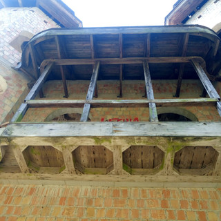 W sklepieniach wyraźnie widać miejsca przygotowane na kasetony .W budowli widać elementy charakterystyczne dla architektury gotyku, baroku, renesansu i oczywiście współczesnej. Już po kilku pierwszych krokach do wewnątrz widzimy misternie przygotowane sklepienia z drewna, kręte schody prowadzące na każdą z 12 wież (symbolizują 12 apostołów), fontannę stanowiącą centrum najniższego poziomu zamku oraz szyb przygotowany zapewne z myślą o windzie.